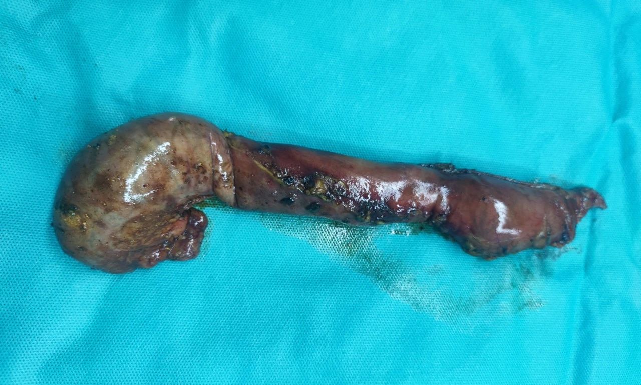 2. 术中攻坚:普外科胃肠病区主任陈劲强团队行腹腔镜袖状胃切除(LSG)+胆囊切除+脐疝修补术,妇科副主任刘侃同步切除直径18cm输卵管囊肿;